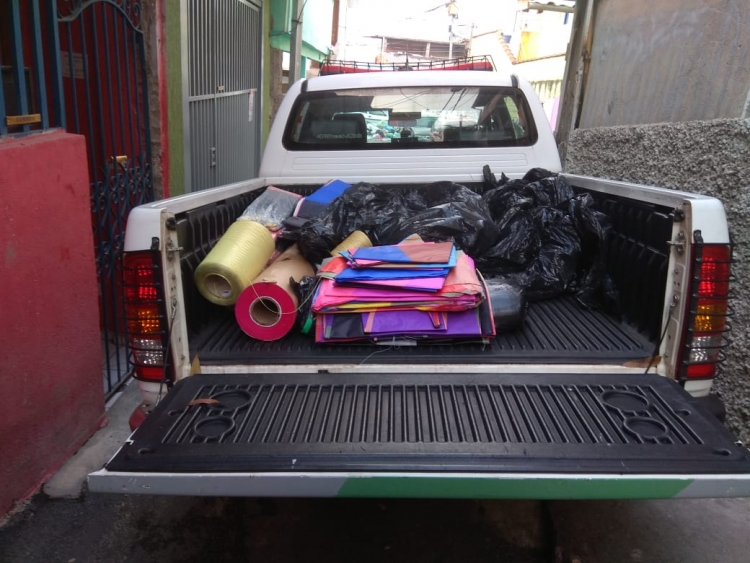 Ao todo, foram apreendidos 57 balões, 102 rolos de papel seda, 49 rolos de barbante, 6.500 folhas de papel de seda cortadas, diversas folhas de projetos de balões, além de vários outros objetos para a fabricação.