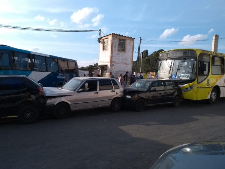 Um acidente envolvendo três veículos e dois ônibus municipais por volta das 15h30 da tarde desta quinta-feira (21), na Estrada do Caminho Velho, n° 130, no bairro do Jardim Nova Cidade, deixou uma pessoa ferida levemente, de acordo com uma moradora que passava pelo local.