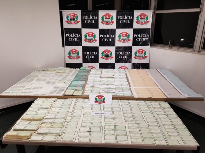 Em seguida, os policiais diligenciaram na residência do indivíduo, situada na Rua dos Andradas, onde foram localizadas centenas de cédulas de identidade em branco, de diversos Estados da Federação, documentos de veículos, folhas de cheque em branco, além de 3 Carteiras Nacionais de Habilitação em nome de terceiros.