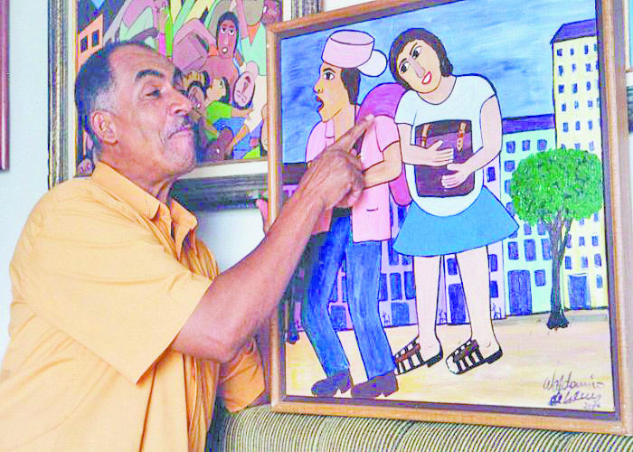 Dentre os temas presentes em suas pinturas estão o cotidiano e o folclore de sua terra natal, Itagibá, na Bahia e mostram festas populares, histórias sobre mula-sem-cabeça e lobisomens. A presença de três cachorrinhos também é uma constante em suas telas.