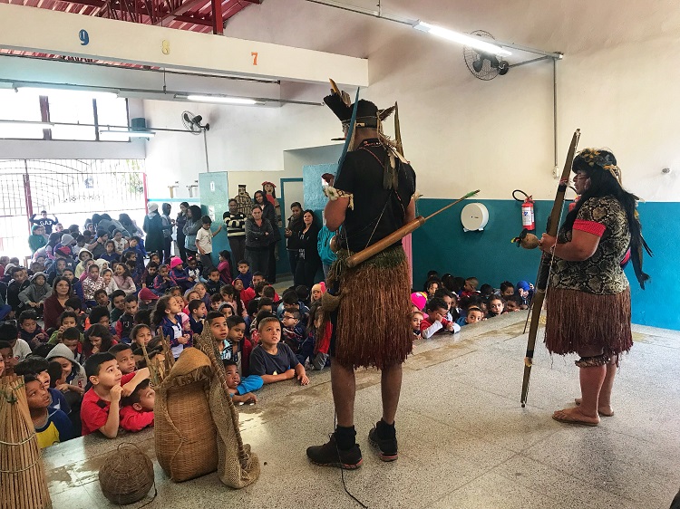 Durante todo o mês de agosto as unidades escolares comemoram o “Agosto Indígena”, promovendo ações de conscientização e valorização dos povos indígenas. O movimento internacional pela luta e conquista de direitos, ressalta a perpetuação de suas identidades e sua preservação cultural. Na ocasião, alunos e professores da EPG Pixinguinha, localizada na região dos Pimentas, se encantaram ao receber membros da aldeia “Filhos dessa terra”, na última terça-feira (14).