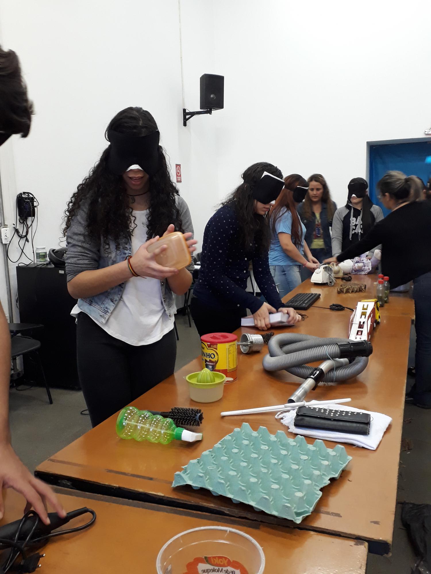 Vivenciar a experiência de uma pessoa com deficiência visual chamou a atenção dos jovens que visitaram a Sala dos Sentidos montada nesta 8ª Feira do Estudante, realizada entre 29 e 31 deste mês, no Adamastor Centro. Com os olhos vendados, os estudantes tocavam os objetos expostos em uma bancada e tentavam adivinhar do que se tratava.