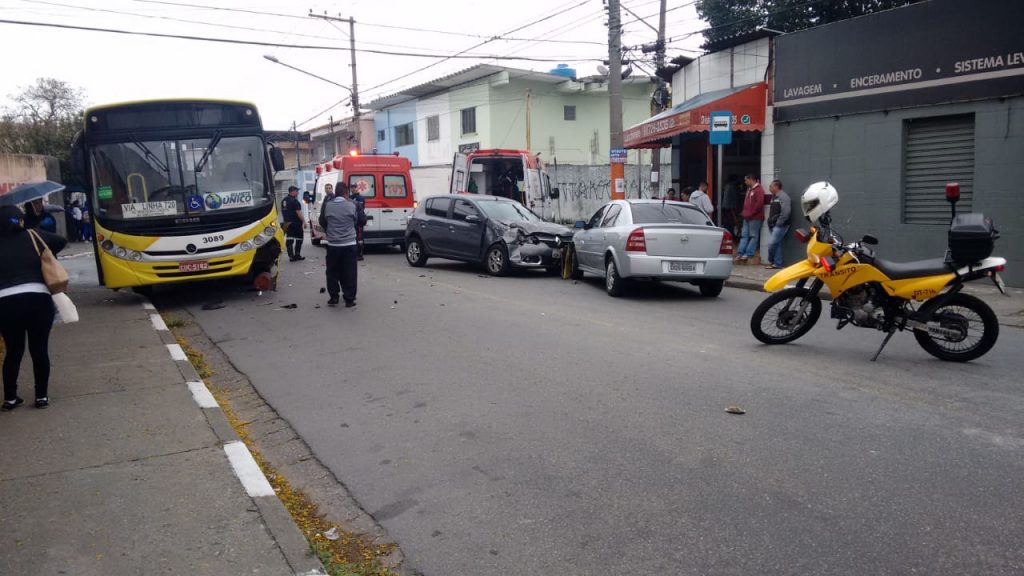 Na manhã desta sexta-feira (05), às 11h30, na rua Cavadas com a rua Dona Olga, na Vila Itapegica, um acidente envolvendo um ônibus municipal e dois veículos deixou um homem ferido, que foi socorrido pelo Serviço Móvel de Atendimento de Urgência (Samu), para o Hospital Carlos Chagas, na região central.