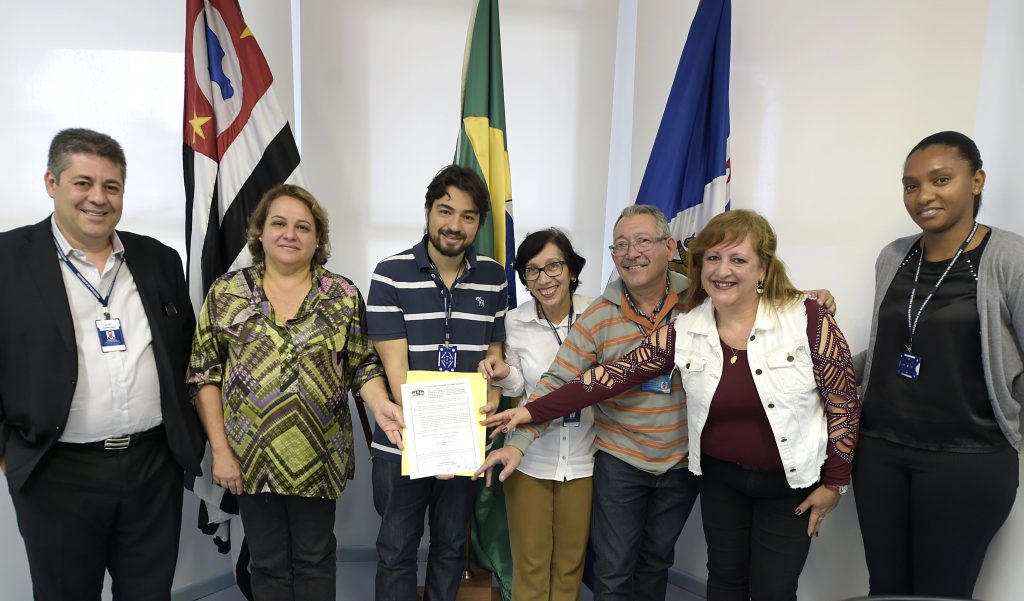 A cerimônia reuniu o prefeito Guti, o secretário de Educação, João Carlos Pannocchia, a diretora do Departamento de Orientações Educacionais e Pedagógicas (DOEP) Zenaide Evangelista Clemente Cobucci, e três professores de educação especial representando a categoria.