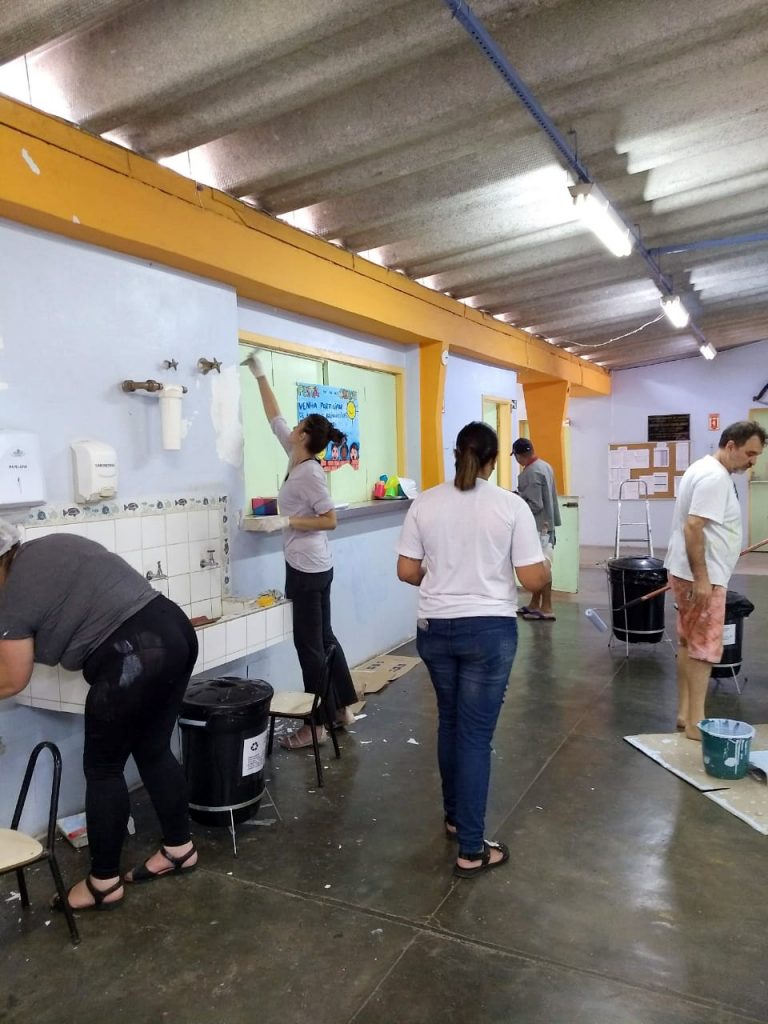 Em três dias de trabalho executado durante o fim de semana e feriado, cerca de 20 pessoas que integraram a força-tarefa aplicaram massa corrida, lixaram paredes e deram um colorido especial às salas de atendimento multiprofissional, ao pátio e ao espaço de convivência. Além da mão de obra voluntária, boa parte dos materiais também foi obtida por meio de doação do serviço de Saúde vizinho: o Centro de Especialidades Odontológicas (CEO Macedo).