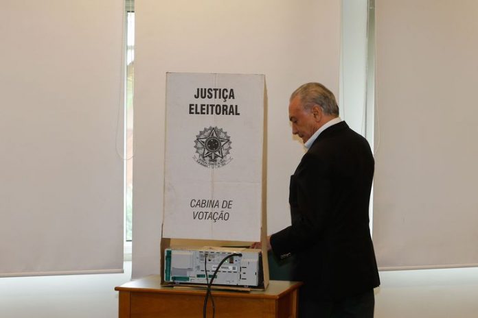 O presidente Michel Temer (MDB) votou cedo neste domingo (28). Logo depois das 8h, ele já estava em Pinheiros, na zona oeste de São Paulo, na seção de votação.