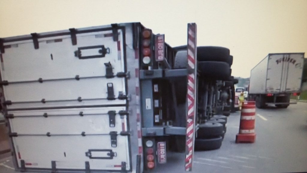 O acidente ocorreu na madrugada desta segunda-feira (12), já que às 4h50, um caminhão tombou no km 212, sentido São Paulo pela pista marginal. A carga da carreta, segundo a concessionária da rodovia, a empresa CCR Nova Dutra, é de massa de bolo, cerca de 24 toneladas.