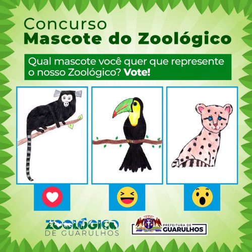 A eleição para escolha do mascote do Zoológico de Guarulhos que segue até o próximo dia 30. Para escolher entre o tucano, o sagui ou o gato do mato, basta acessar a publicação e votar por meio dos perfis da Prefeitura (facebook.com/PrefeituraGuarulhosOficial) ou no  do Zoológico (facebook.com/zoologico.guarulhos) no Facebook.