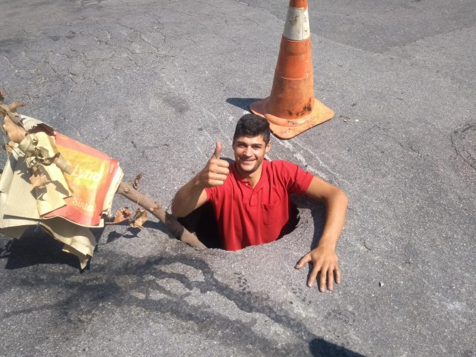 “Há três meses quando começou o buraco, não tinha esse tamanho, porém, agora acredito que tenha quase três metros de profundidade”, destacou o pintor Hyoran Reis César, 22, que entrou na ‘cratera’ e verificou que até uma tubulação passa pelo local que está totalmente aberto e apenas sinalizado.