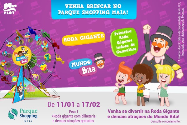 O Parque Shopping Maia vai ficar bem mais animado nessas férias: o empreendimento oferece aos visitantes a chance de mergulhar no Espaço Mundo Bita, um dos desenhos mais queridos pelos pequenos atualmente. Até o dia 17/02 os visitantes poderão contar com uma agenda extensa de atividades especiais que prometem fazer a alegria das crianças nessas férias.