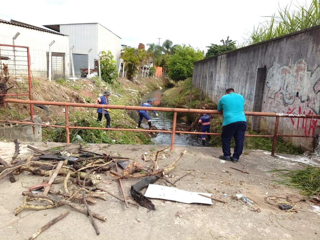 Trechos do Córrego do Cocho Velho no Jardim Cumbica, Vila Isabel, Vila Alzira, Jardim Oliveira e Jardim Giovana receberam equipes que realizaram a roçagem.