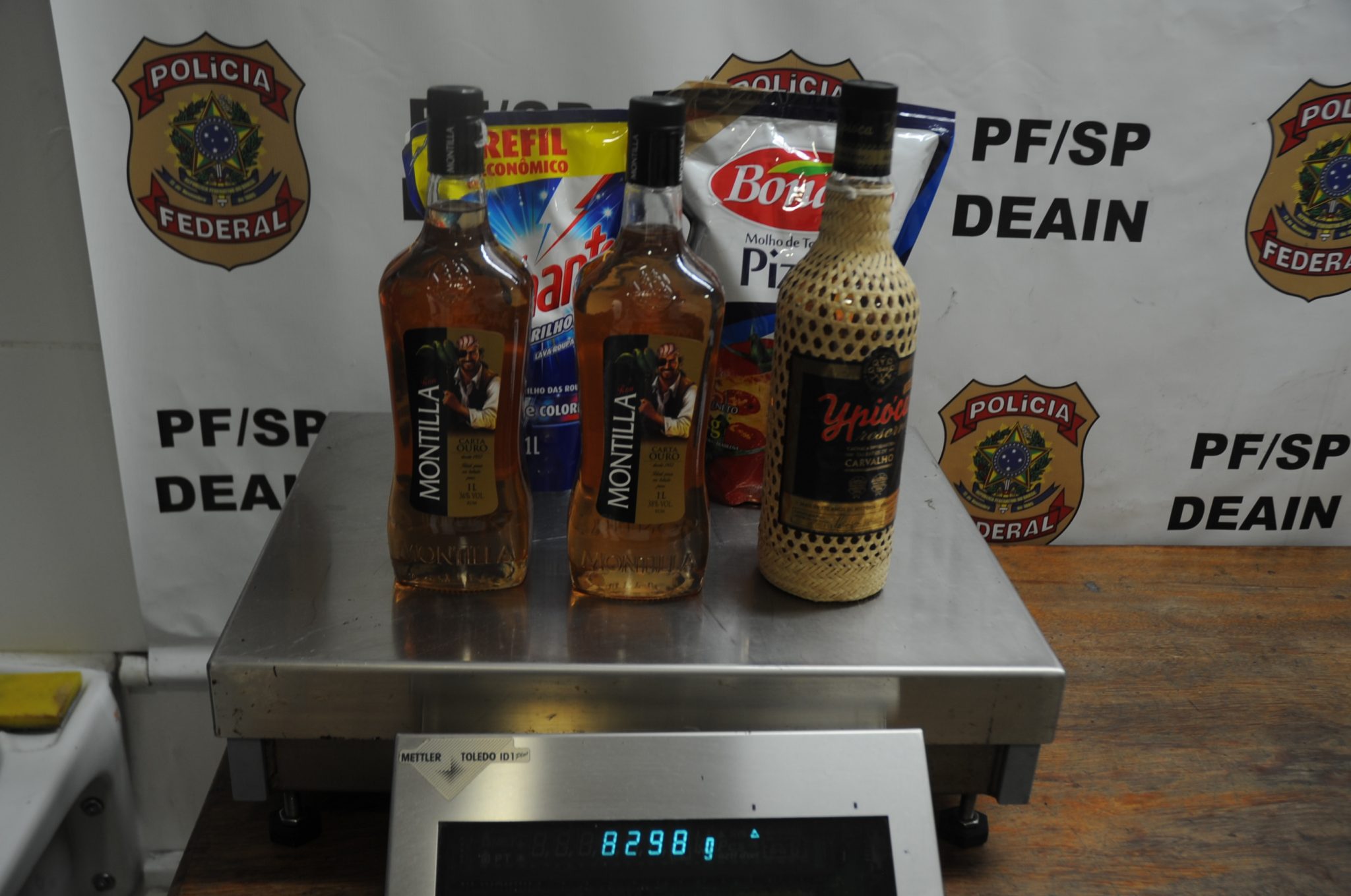 A Polícia Federal prendeu uma passageira que apresentou certo nervosismo na fila do check-in. A mulher filipina de 40 anos de idade, tinha como destino final Kuala Lumpur/Malásia e ao passar sua mala pelo raio-x foi constatado que havia três litros de alguma bebida no seu interior, o agente ao efetuar a abertura de uma garrafa sentiu forte odor de cocaína. A passageira foi conduzida até a delegacia, onde foi feita a revista na mala e a perícia na substância encontrada, ficando constatado que além das garrafas, havia duas embalagens de sabão e outra de molho de tomate contendo cocaína líquida, somando um volume de oito quilos.