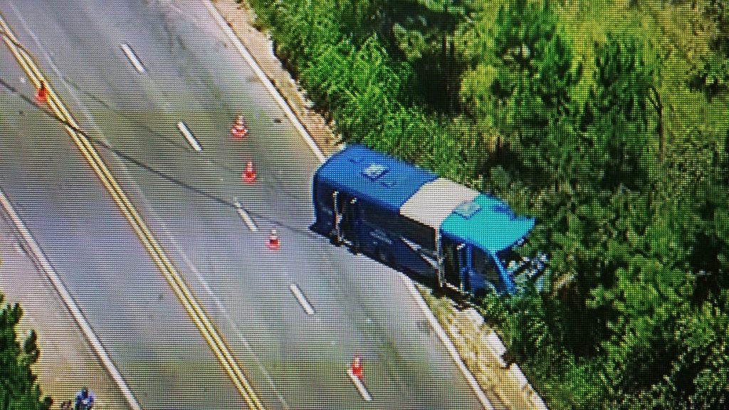 Após sete horas do acidente que ocorreu na madrugada desta segunda-feira (28), às 5h27, de acordo com informação do Corpo de Bombeiros, a parte da pista da Estrada Guarulhos-Nazaré Paulista, n° 100, continua bloqueada e com o micro-ônibus ainda no local. Os outros dois veículos também envolvidos no acidente, Gol e um Corsa, já foram retirados da pista.