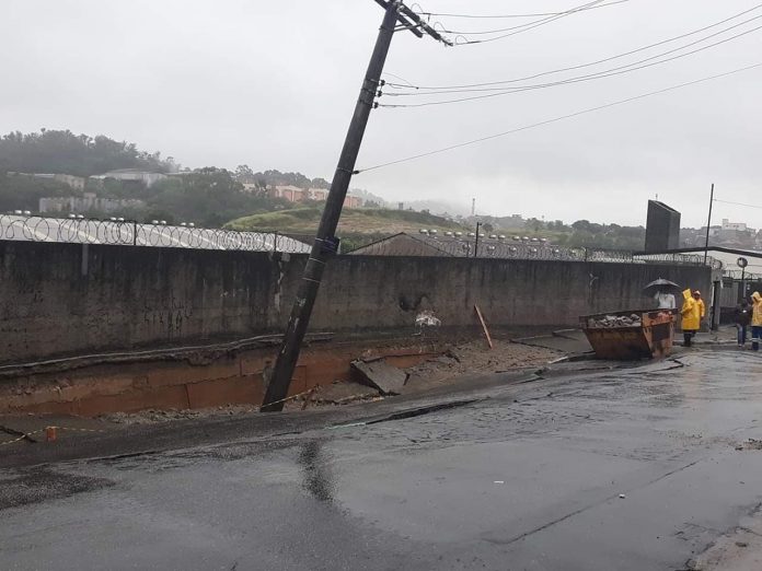 Além de ceder, parte da via ainda se encontra com muitas rachaduras. Há um poste que também corre risco de queda. Devido a essa situação, o tráfego de veículos segue em lentidão pelas imediações e muitos moradores devem ter complicações para voltar para a casa, já que linhas municipais e intermunicipais passam pela via durante o trajeto.