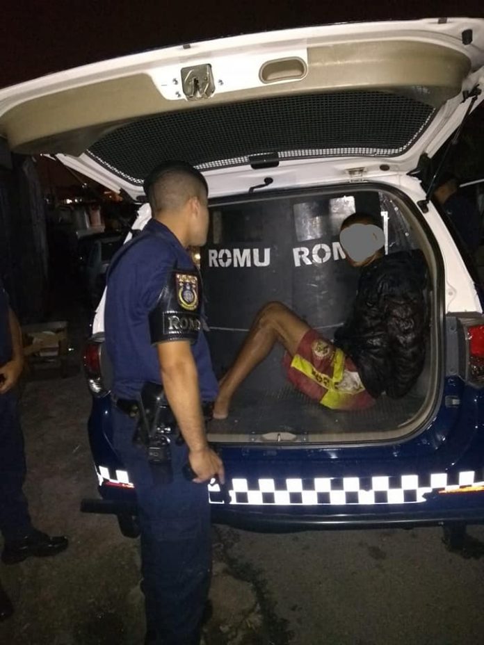 Durante um patrulhamento de rotina da agentes da Ronda Ostensiva Municipal (Romu), pelo bairro do Cidade Satélite, os policiais suspeitaram de um homem, que ao verificar a aproximação da viatura, de acordo com a Romu, teria abandonado uma pochete que estava em mãos e tentou fugir entrando em um barraco.