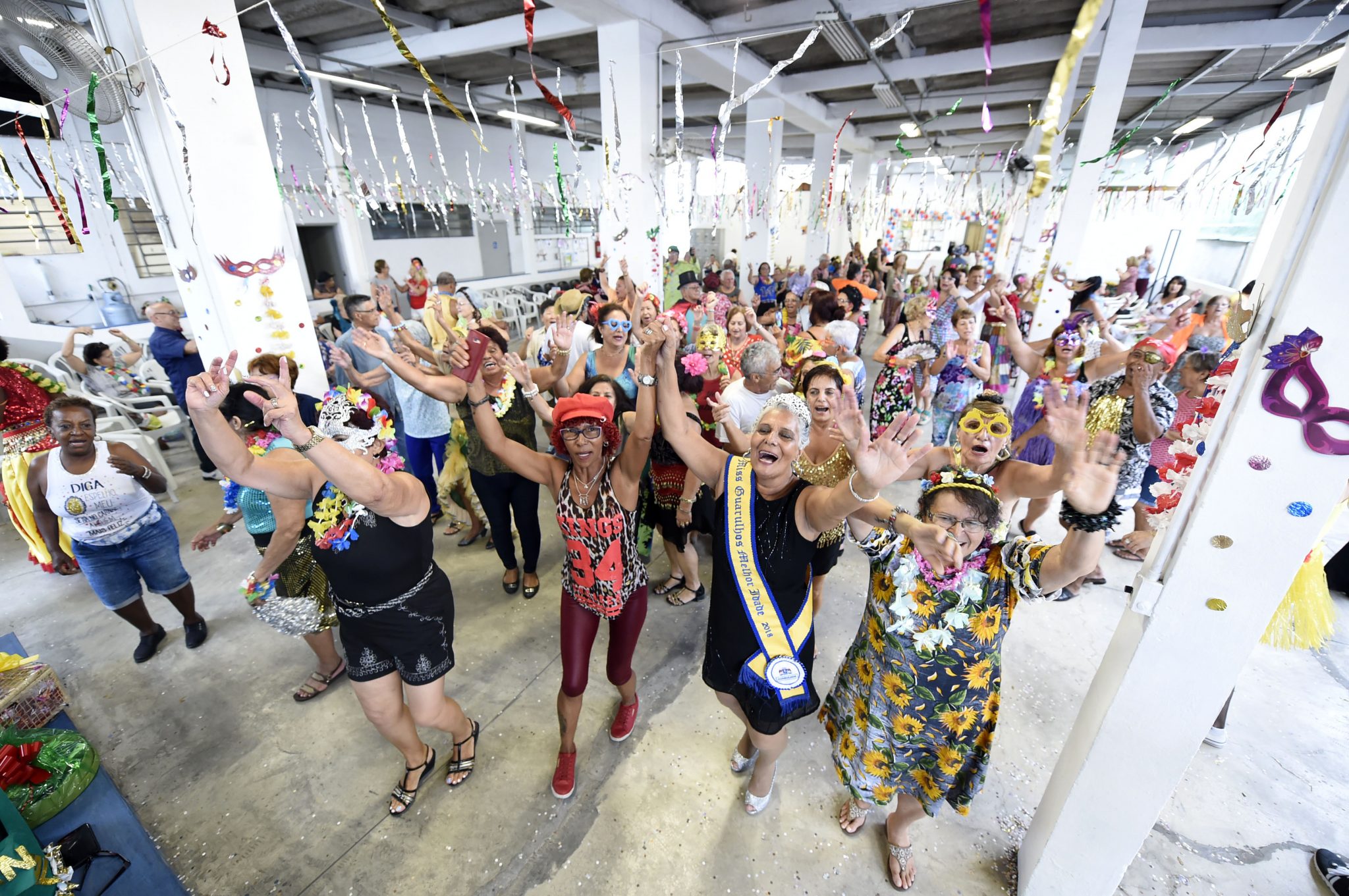 Ao som das tradicionais marchinhas carnavalescas, fantasiados ou usando adereços, cerca de 200 idosos participaram do Grito de Carnaval no Centro de Convivência do Idoso (CCI) Santa Mena, nesta sexta-feira (22), em Guarulhos. A turma da melhor idade dançou e se divertiu no baile comandado pela banda Românticos Modernos. O prefeito Guti prestigiou o evento, promovido pela Secretaria de Desenvolvimento e Assistência Social (SDAS) e que escolheu ainda os foliões mais alegres e com fantasias mais originais como Rainha e Rei do Carnaval do CCI Santa Mena 2019. Na próxima quarta-feira (27), o Grito de Carnaval ocorrerá no CCI Gopoúva, a partir das 14 horas, com animação do DJ Alan Soares.