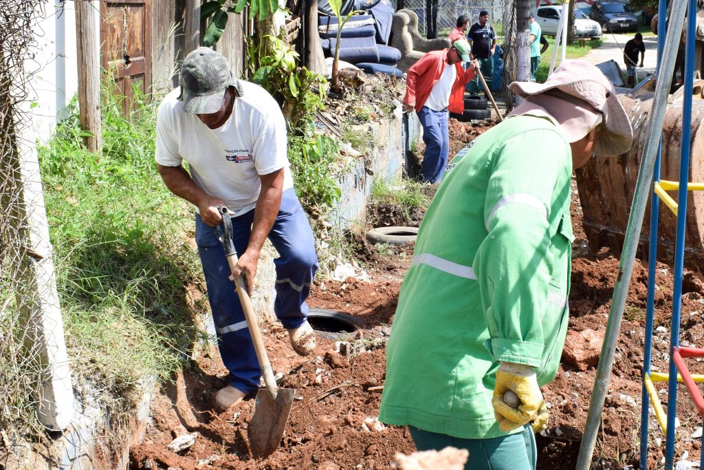 Servidores trabalham na construção de um muro com 120m de comprimento que vai substituir a cerca de alambrado já desgastada. As próximas etapas são a readequação do piso interno, incluindo construção de uma área de 24m² para estacionamento de caçambas do tipo roll on, e edificação de apoio de 20 m². Durante o período de reforma, o atendimento à população ocorre normalmente no local.