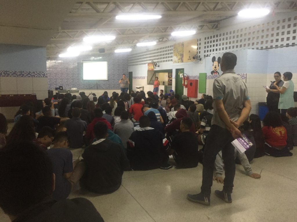 Nesta quinta-feira (4), cerca de 200 alunos dos ensinos fundamental e médio da Escola Estadual Maria Hilda Ornelas de Oliveira, no Jardim Santo Afonso, assistiram à palestra “E Eu Com Isso?”, projeto coordenado pela Subsecretaria de Políticas para as Mulheres (SPM), vinculada à Secretaria de Direitos Humanos da Prefeitura de Guarulhos.