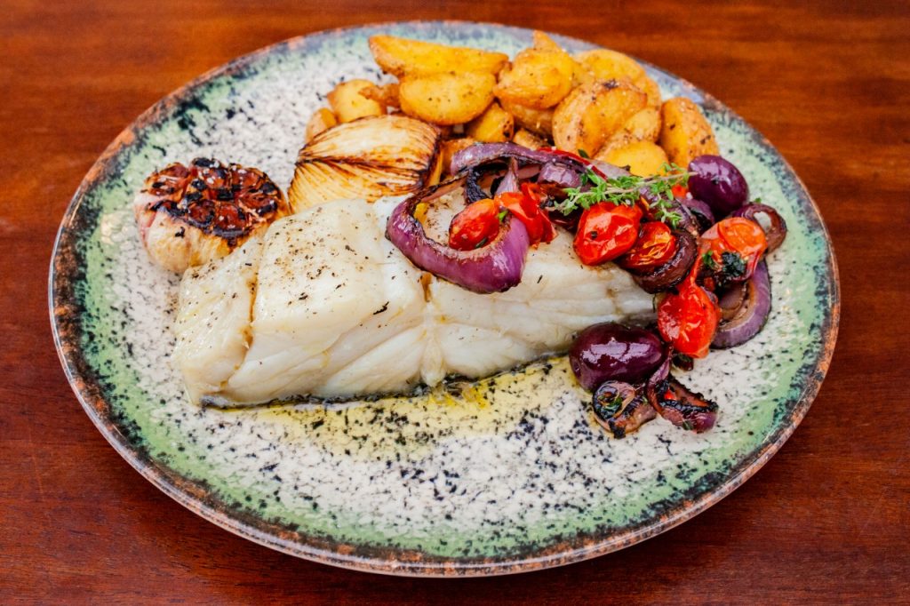 “É um lombo de bacalhau, a gente faz um cozimento em baixa temperatura, servido com cebola tostada, alho assado, batata rústica, azeitona fresca e muito azeite português”, destacou em entrevista a chef executiva e consultora gastronômica do restaurante, Paula Labaki.