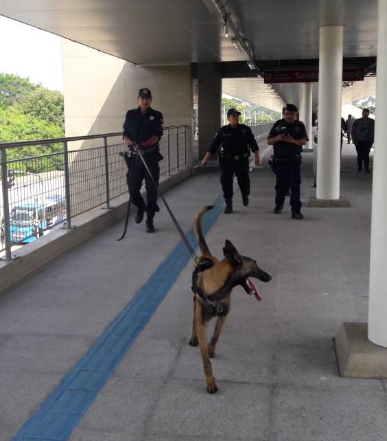 Na manhã desta quinta-feira (25), equipes do canil da Guarda Civil Municipal (GCM) realizaram um treinamento de mantrailing(busca de pessoas desaparecidas), no interior da Rodoviária do Parque Cecap, com cães das raças Akita, Pastor Belga Malinois e Bloodhound. Os animais estão sendo preparados para substituir o cão Haytham, que em breve irá se aposentar.