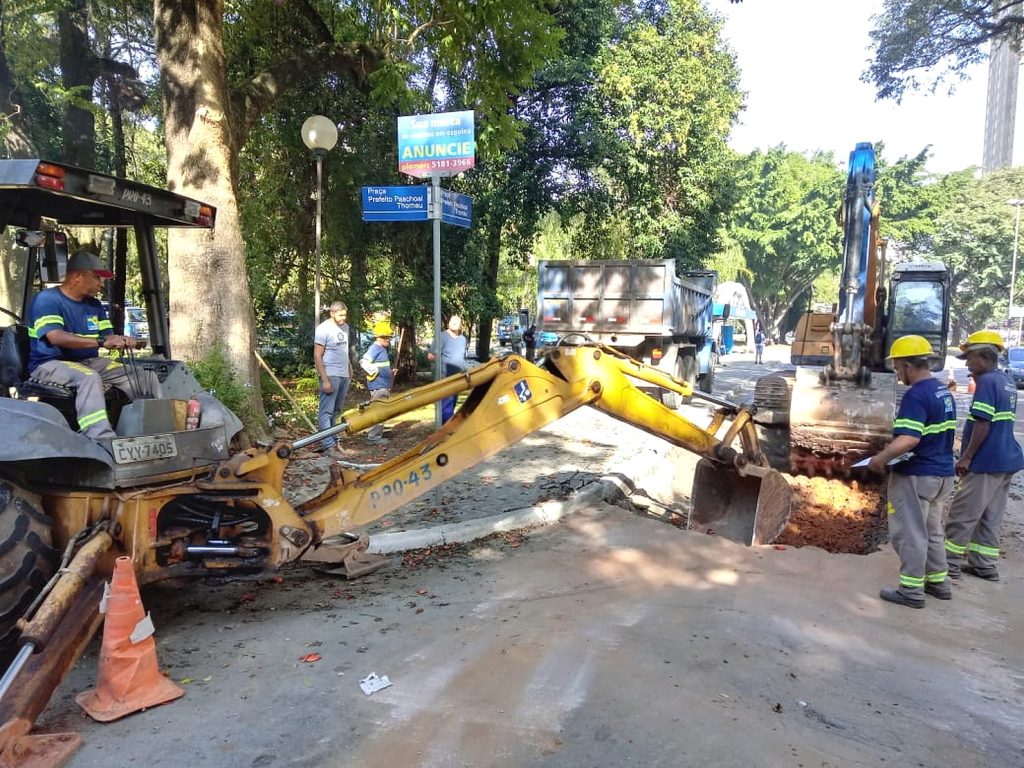 Prefeitura executa a regularização de pavimento na Praça IV Centenário
