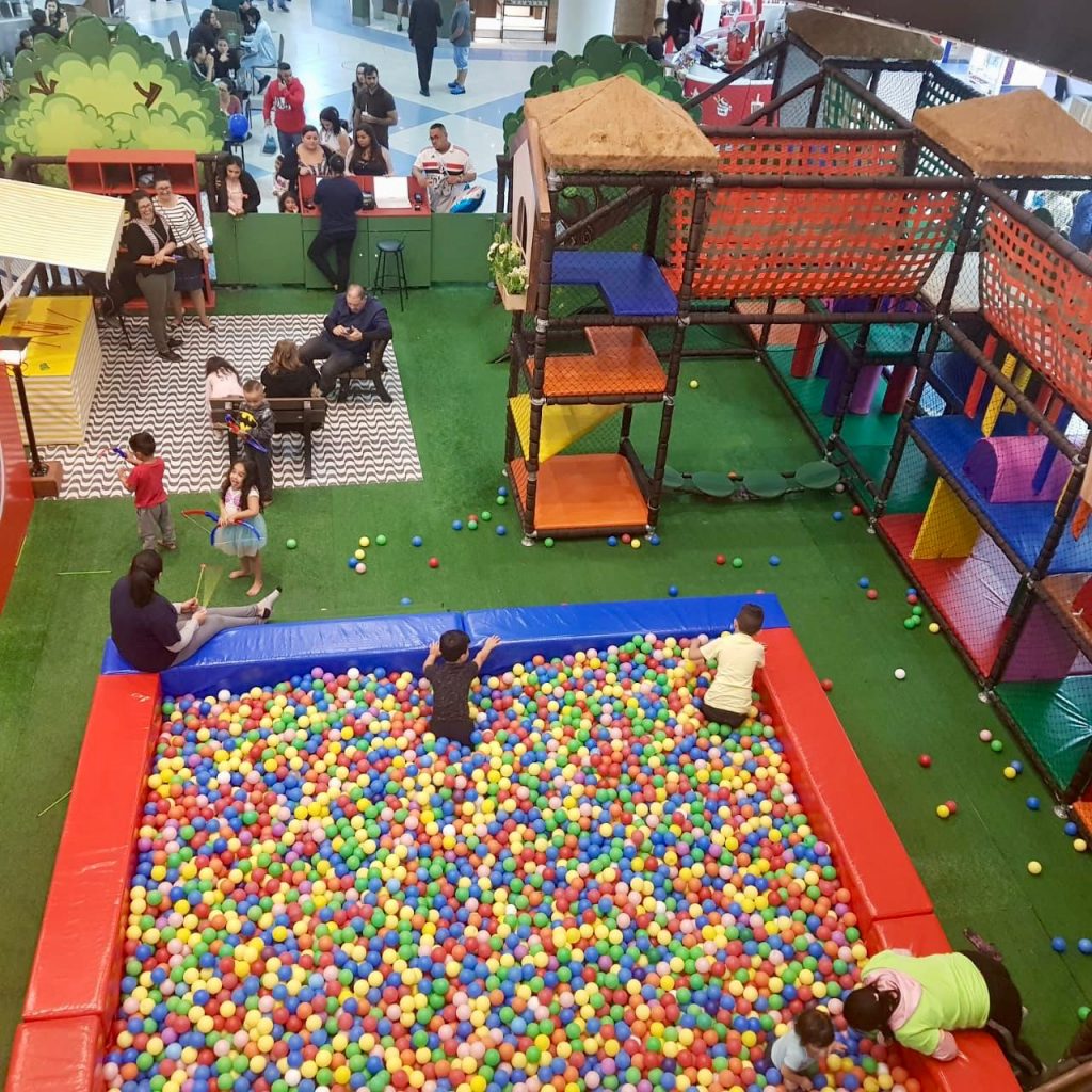 O espaço conta com muita aventura: Kid play com parede de escalada, ponte com obstáculos, atividades como túnel, labirinto, escorregador e uma piscina repleta de bolinhas coloridas para a diversão dos pequenos.