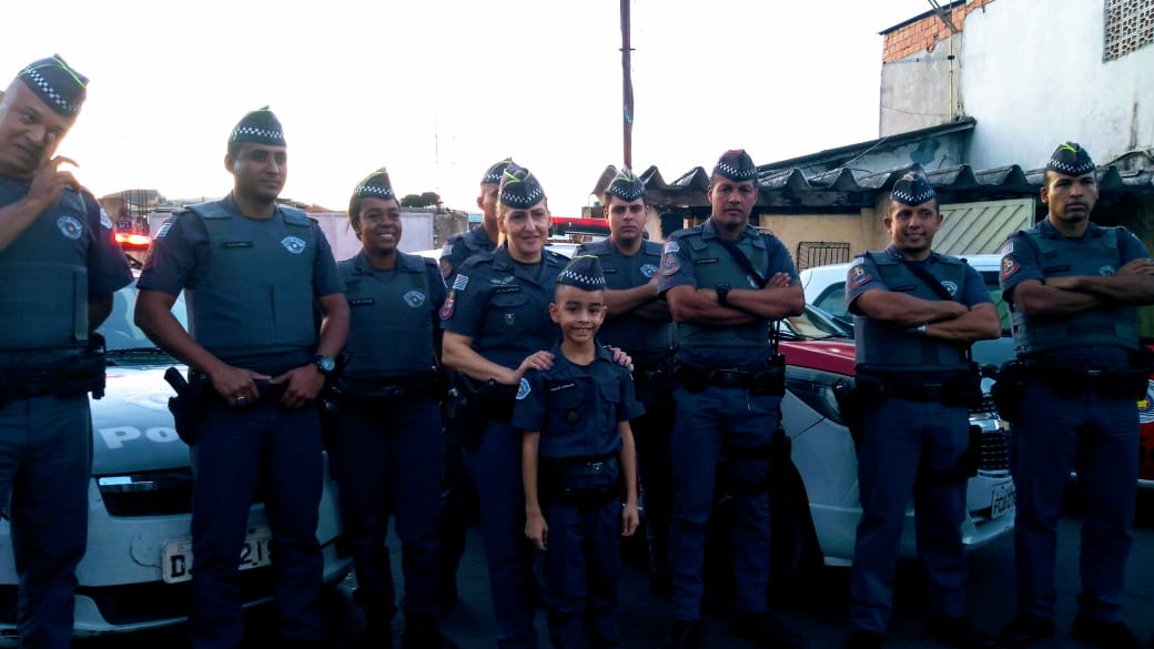 Na tarde de domingo (30), policiais militares do 44° batalhão realizaram o sonho do garoto Kauã Prado, que completou oito anos, e o presentearam com uma farda da PM. A criança que mora no bairro da Vila Barros, havia enviado uma carta aos policiais destacando o sonho de ser tornar um policial.