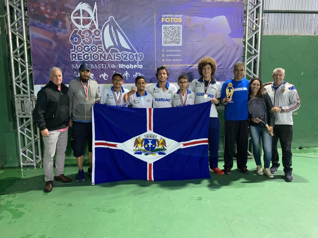 A equipe masculina sub-20 de tênis conquistou o primeiro ouro da delegação de Guarulhos que disputa os Jogos Regionais em São Sebastião/Ilhabela, litoral norte de São Paulo.