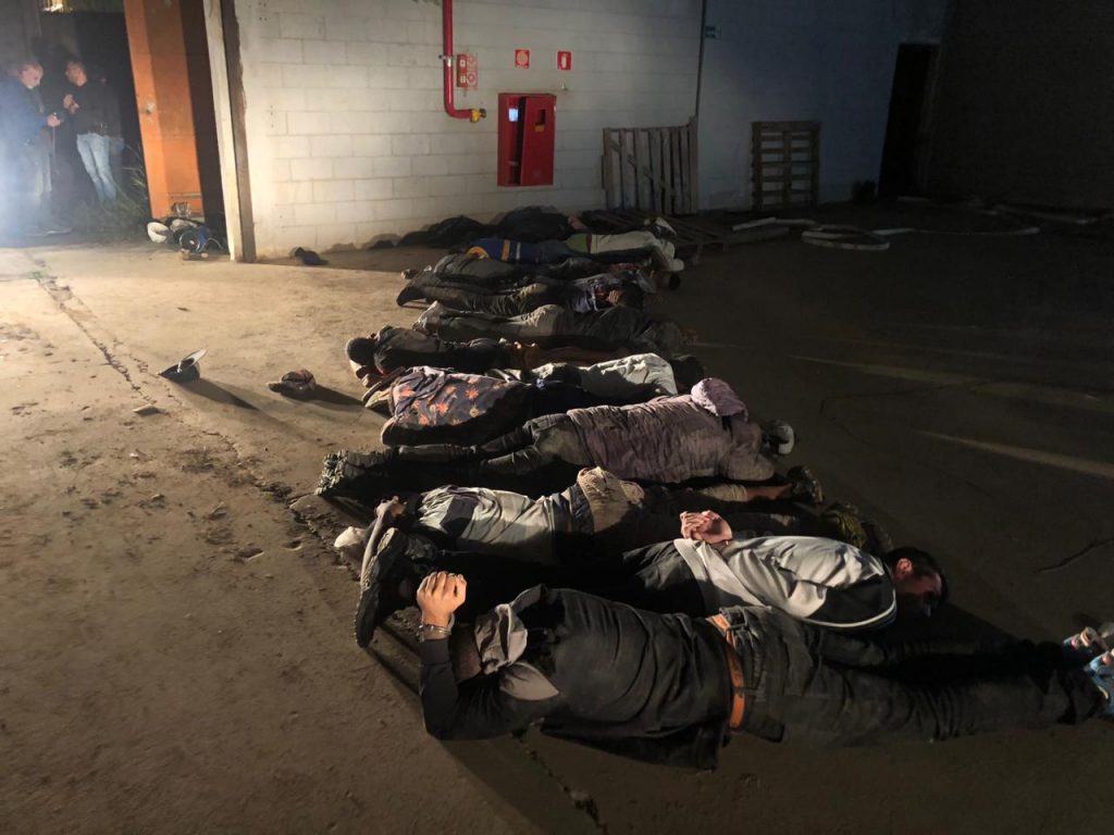 De acordo com a Polícia Civil, logo na chegada dos agentes eles foram recebidos a tiros, e um dos suspeitos chegou a ficar ferido, sendo encaminhado para o hospital, e após receber alta, foi levado para a delegacia, junto com os outros 14 indivíduos, que foram detidos dentro de um galpão utilizado para armazenar cargas roubadas.