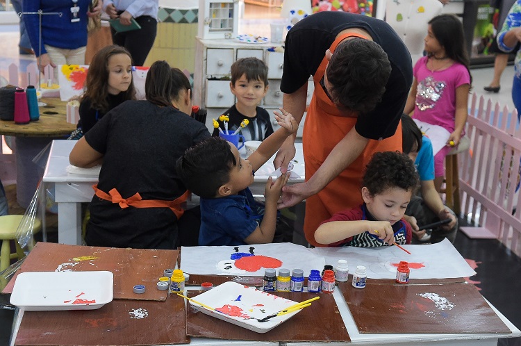 Entre as atividades estão pintura criativa em tecido com tinta atóxica (específica para crianças) e modelagem de biscuit (tipo de massa de modelar). Todos os materiais utilizados são disponibilizados gratuitamente e, ao final, as crianças poderão levar suas artes para casa.