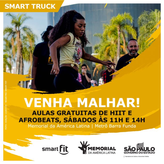 O Memorial da América Latina, em parceria com a academia Smart Fit, recebe, a partir do sábado, dia 20 de julho, o Smart Truck, projeto que conta um furgão que leva aulas de ginástica gratuitas e ao livre para espaços da cidade. O objetivo da ação é promover a democratização da atividade física e, consequentemente, a saúde e o bem estar para todas as pessoas.
