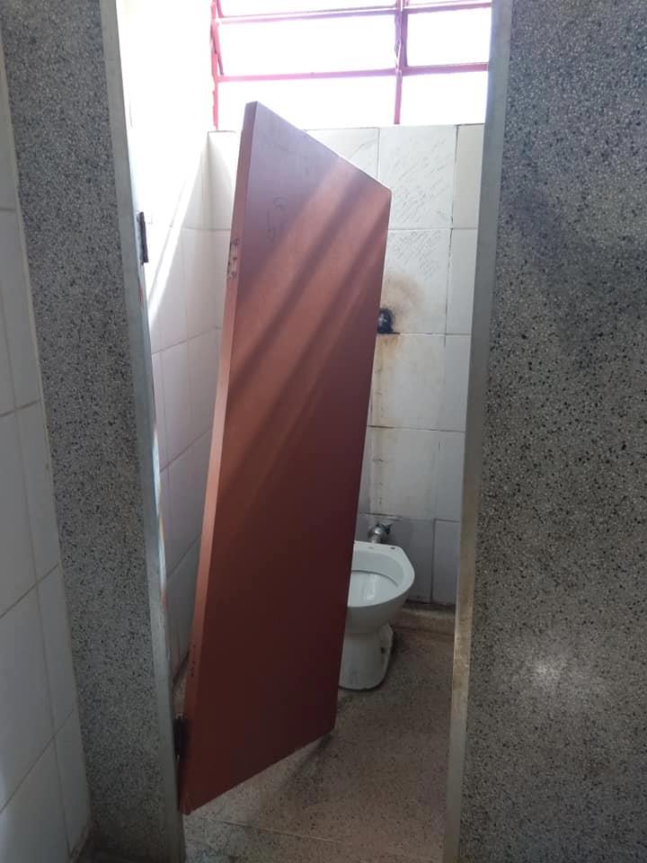 Os banheiros feminino e masculino do Bosque Maia, localizado na avenida Paulo Faccini, s/n, na região central, sofrem com diversos problemas, como a falta de torneiras, pichações e portas quebradas, faltando estrutura para atender os usuários que frequentam o local diariamente para a realização de atividades esportivas.