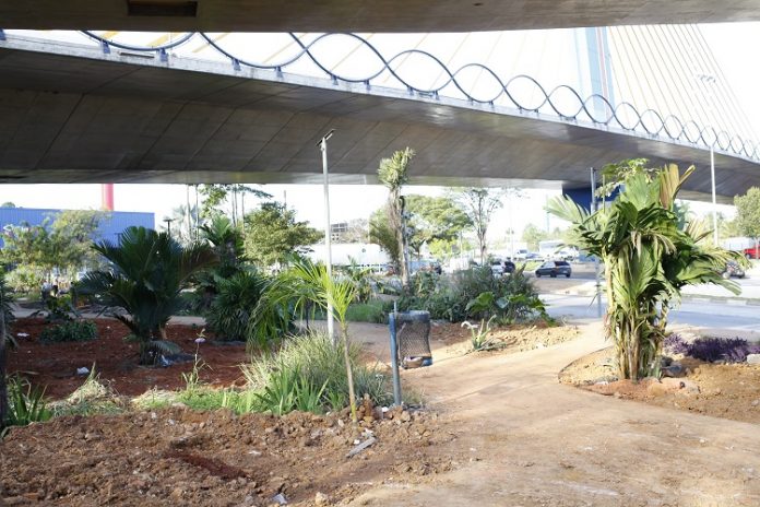 O projeto paisagístico do viaduto se espalha por uma área de 8 mil m² nos dois lados da construção e inclui espelhos d’água, lagos para peixes ornamentais, 38 espécies de palmeiras, mais de 50 espécies de arbustos, plantas epífitas e bromélias, além de decks e bancos de madeira.