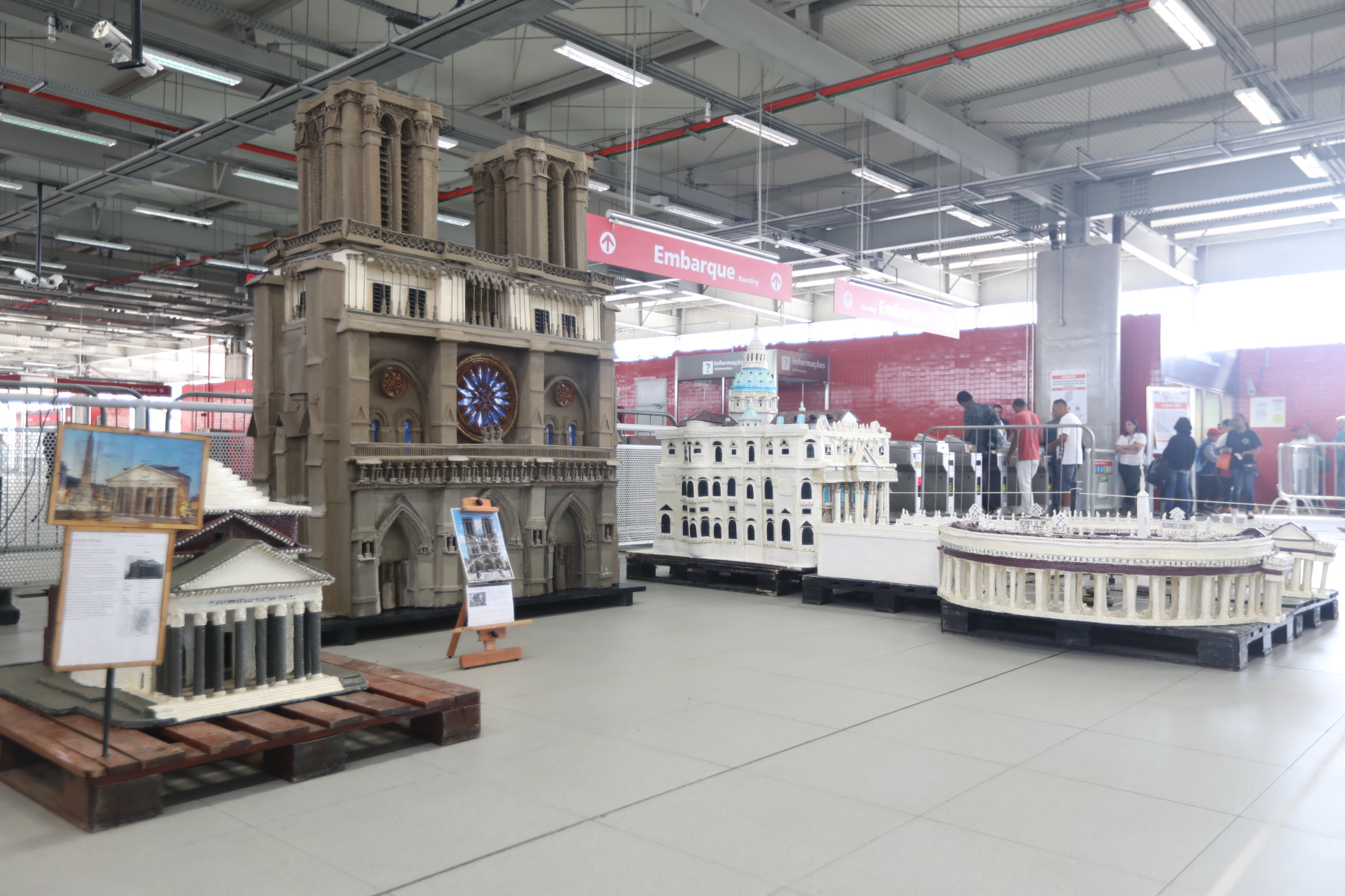 A mostra conta com maquetes de algumas das mais conhecidas construções europeias. A partir do uso de materiais como papel, papelão e cimentcola, Marli e Cabelo utilizaram uma técnica surpreendente para recriar ícones da arquitetura mundial como a Catedral de Notre Dame, o Panteão, a Basílica de São Pedro e o Coliseu de Roma.