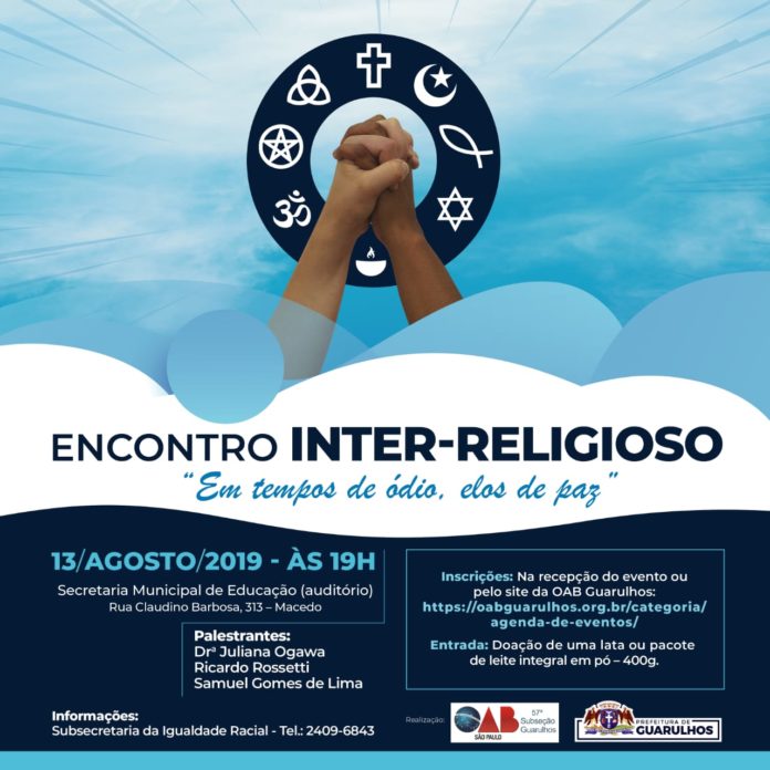 Com o tema “Em tempos de ódio, elos de paz”, o evento é uma parceria com a subseção Guarulhos da Ordem dos Advogados do Brasil (OAB). “A ideia é dar voz a todas as religiões, por isso é importante que, seja qual for a sua religião, até se você não tiver uma, participe do evento”, convida o gestor da Igualdade Racial, Anderson Guimarães. Mais informações podem ser obtidas pelo telefone 2409-6843.