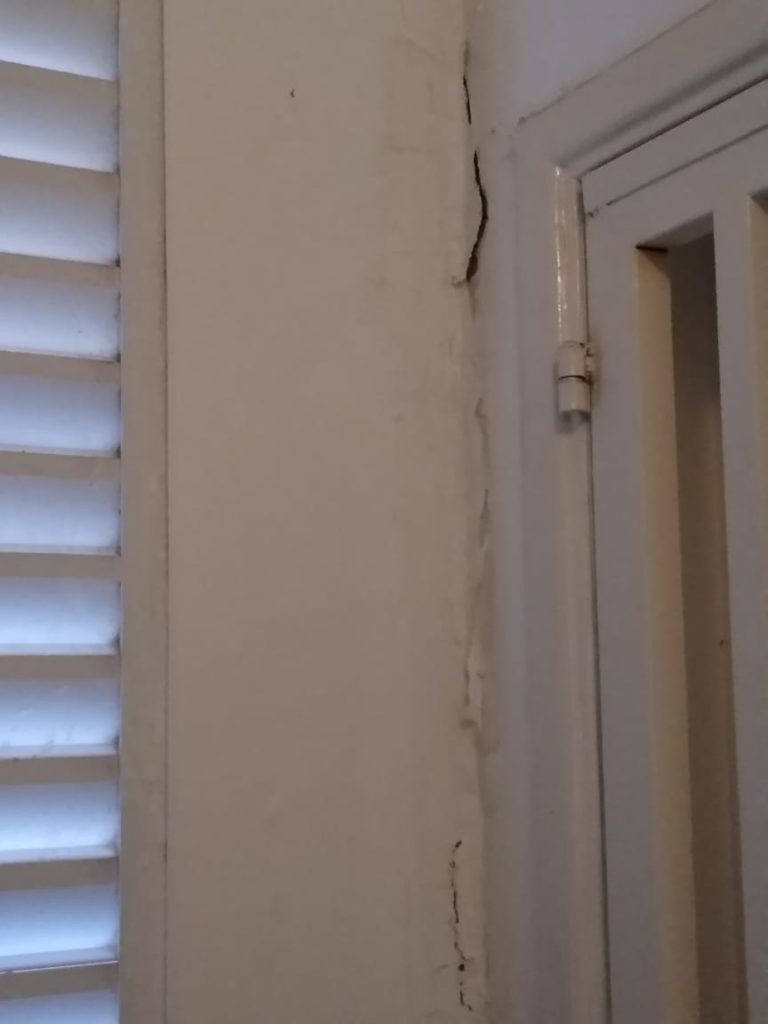 Já Ângela, diz que não tem rachaduras dentro do próprio apartamento, porém, a vizinha sofre com esse problema. “A Defesa Civil veio aqui e disse que não tem risco de queda, além de alegar que não podem fazer muita coisa, porém, é um prédio que tem muita criança e idosos. Durante a noite, continuamos a ouvir barulhos no telhado e nas paredes”, informou.
