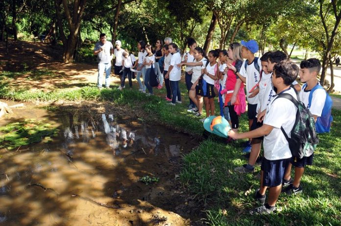 plantio de árvores e aprendem sobre a importância da arborização da cidade,