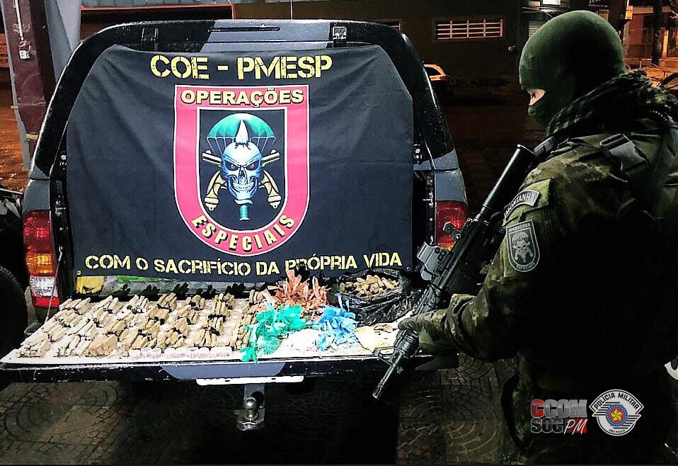 De acordo com a PM, durante a realização da abordagem e busca pessoal, teria sido encontrado na mochila uma grande quantia de drogas diversas, além de dinheiro e um aparelho celular. Quando questionado pelos policiais, o indivíduo teria afirmado que estava realizando o tráfico de drogas pelo local e que também era procurado pela Justiça pelo mesmo crime.