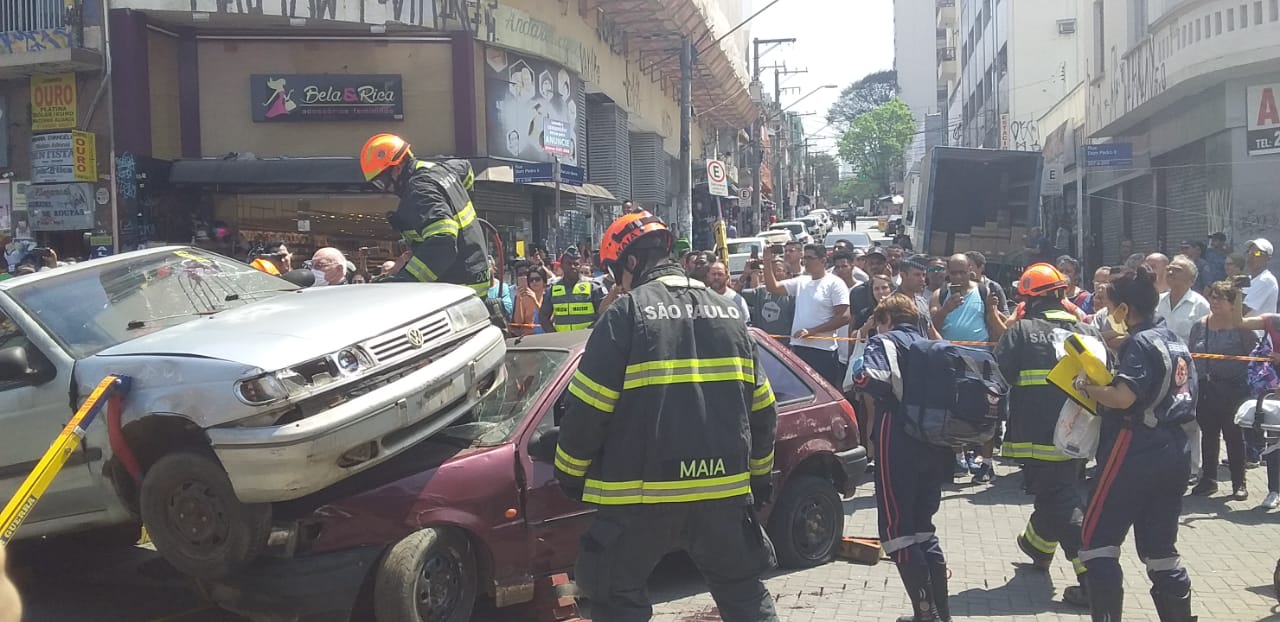 Quem esteve no calçadão da rua Dom Pedro II na manhã desta quarta-feira (18) pôde ver uma simulação de acidente de trânsito envolvendo dois veículos e o socorro imediato às vítimas no local. A ação da Prefeitura de Guarulhos, por meio da Secretaria de Transportes e Mobilidade Urbana (STMU) em parceria com a Polícia Militar e o Detran-SP, marcou o início da Semana Nacional do Trânsito.