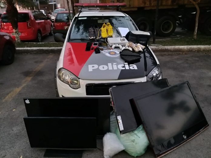 Durante a ocorrência, foram presos quatro homens e dois menores apreendidos, e durante as buscas os policiais encontraram dois pares de tênis da Nike, quatro televisores, um vídeo game, cinco celulares, 639 papelotes de cocaína, seis munições de calibre 38 e uma quantia de R$ 2.838.