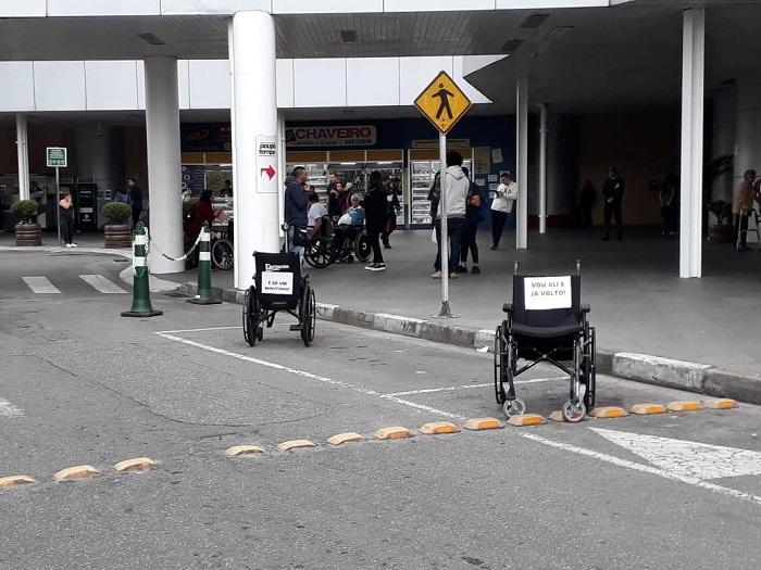 Atores representando idosos e anjos interagiram com os clientes. Também houve a participação de um ator que interpretou um cadeirante. Cadeiras de roda ocuparam vagas comuns de estacionamento com os mesmos pretextos de quem ocupa indevidamente os locais exclusivos, utilizando frases do tipo “é só um minutinho” e “volto já”.