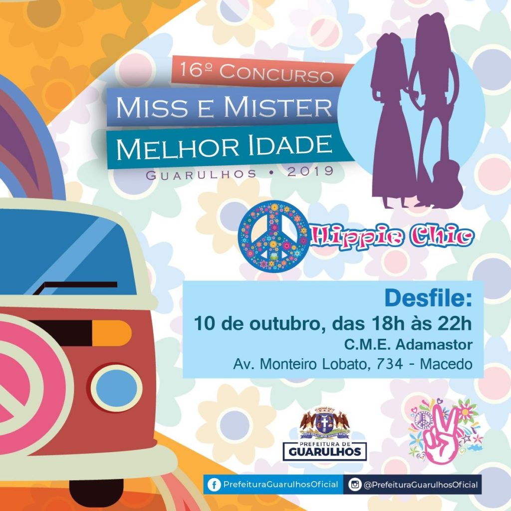 Guarulhos escolhe nesta quinta-feira (10), a partir das 18h, o 16º Miss e Mister Melhor Idade no Teatro Adamastor Centro. Um total de 51 mulheres e seis homens – com idade igual ou superior a 60 anos completos e residentes no município – se inscreveram para o concurso, cujo tema deste ano é Hippie Chic. A entrada é gratuita.