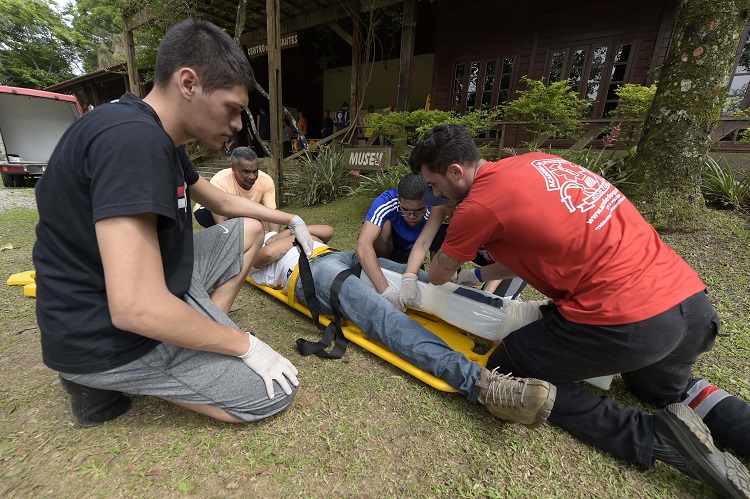 Após a corrida, todos os times continuaram as provas em terra com o atendimento de primeiros socorros para vítimas de traumas físicos. Com monitoramento do Samu, os participantes realizaram a imobilização das vítimas para transporte em maca. Segundo um dos avaliadores da atividade, Demitrius Bellezo, do Núcleo de Educação Permanente (NEP), o Samu avalia os primeiros socorros de modo técnico, observando se os equipamentos foram utilizados adequadamente e se a abordagem à vítima está dentro das normas exigidas, assim como é feito no dia a dia.