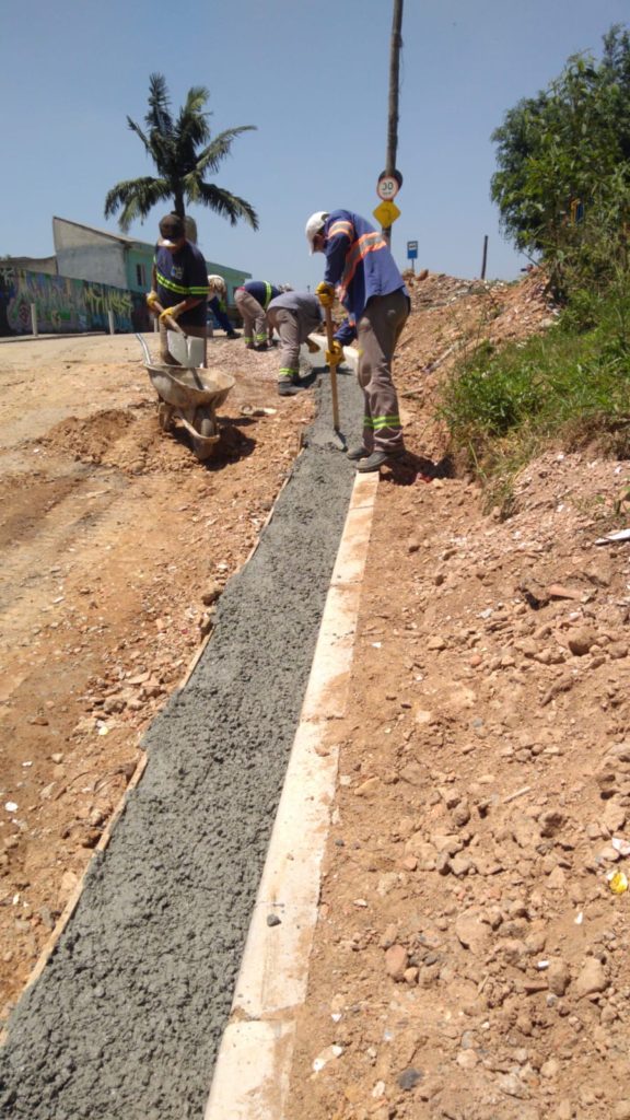 Num trecho compreendido entre as ruas Eça de Queiroz e Fluorita, o DOADM está trabalhando em duas frentes: obras de drenagem, com instalação de galerias de águas pluviais em 300 metros da via, e pavimentação com colocação de guias e sarjetas em 500 metros lineares, o equivalente a 3.500 metros quadrados de piso intertravado.