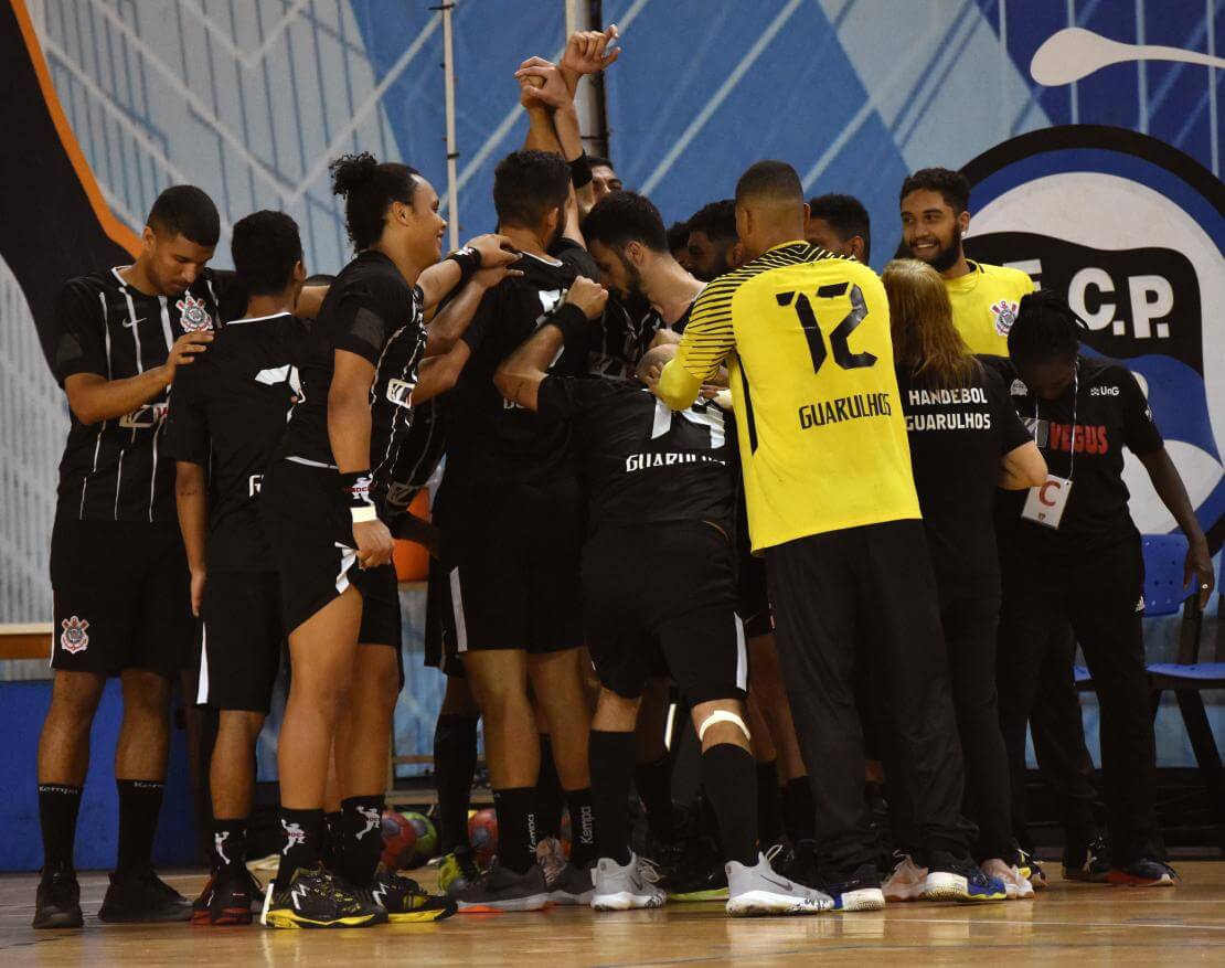 Depois de dez rodadas, o Corinthians – Guarulhos precisa de apenas duas vitórias nos próximos quatro jogos para garantir sua classificação à segunda fase da Liga Nacional de Handebol Masculino. A equipe Alvinegra ocupa a terceira posição da Conferência Sul / Sudeste com 15 pontos. Pinheiros e Taubaté, com 18 pontos, ocupam, respectivamente, a liderança e vice-liderança.