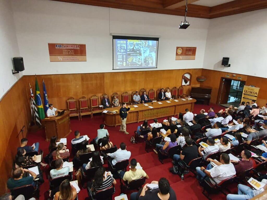 O Grupo de Segurança Viária, formado pela Secretaria de Transportes e Mobilidade Urbana (STMU), Polícia Rodoviária Federal, Polícia Militar, Polícia Civil, Polícia Rodoviária Estadual, entre outras instituições públicas e privadas, promoveu nessa terça-feira (29), na Faculdades Integradas de Guarulhos (FIG-Unimesp ), na Vila Rosália, debate sobre a Lei Seca, com a participação de cerca de 120 alunos do curso de Direito e professores e coordenadora pedagógica da faculdade, representante da Ordem dos Advogados do Brasil (OAB).