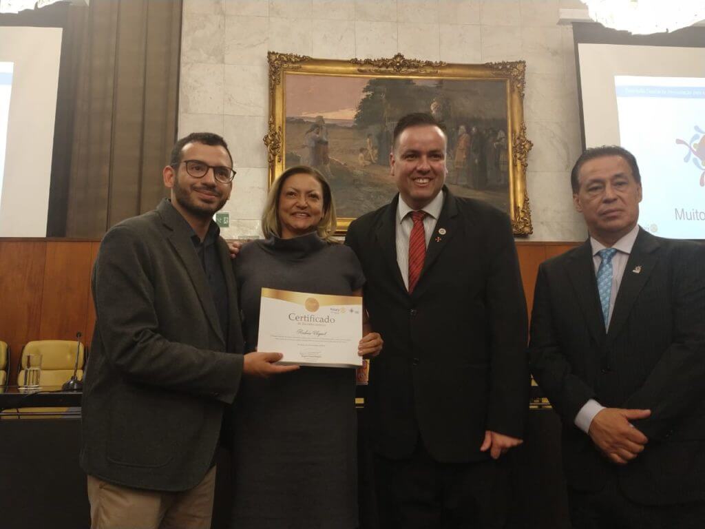 O Departamento de Proteção Animal (DPAN) da Prefeitura de Guarulhos recebeu na quarta-feira (6) oPrêmio Destaque 2019 do Rotary Club Paulistano. A solenidade foi realizada na Câmara Municipal de São Paulo com a presença do presidente do clube, Roque Cortes, e de autoridades da Casa. Além da proteção animal, também foram premiadas personalidades e instituições que atuam nas áreas de educação, segurança pública e empreendedorismo.