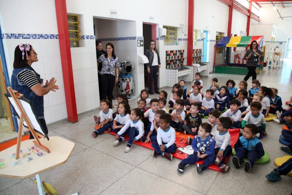 Nesta quinta-feira (14) foi a vez das crianças e professores da EPG Benedito Vicente de Oliveira, no Parque Santo Agostinho, conhecerem o projeto, por meio da professora Marlene Gomes, que redirecionou sua carreira para a arte de contação de histórias.