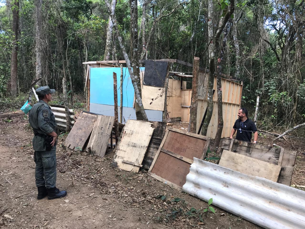 Em outra ação de fiscalização realizada há uma semana pela Sema, após denúncia anônima, em parceria com a GCM Ambiental e a Proguaru, foi flagrado início de construção irregular sobre um curso d’água em área de proteção permanente (APP) na região conhecida como Paiol do Meninos, no Jardim Monte Alto. Ninguém foi encontrado no local e a construção foi removida.