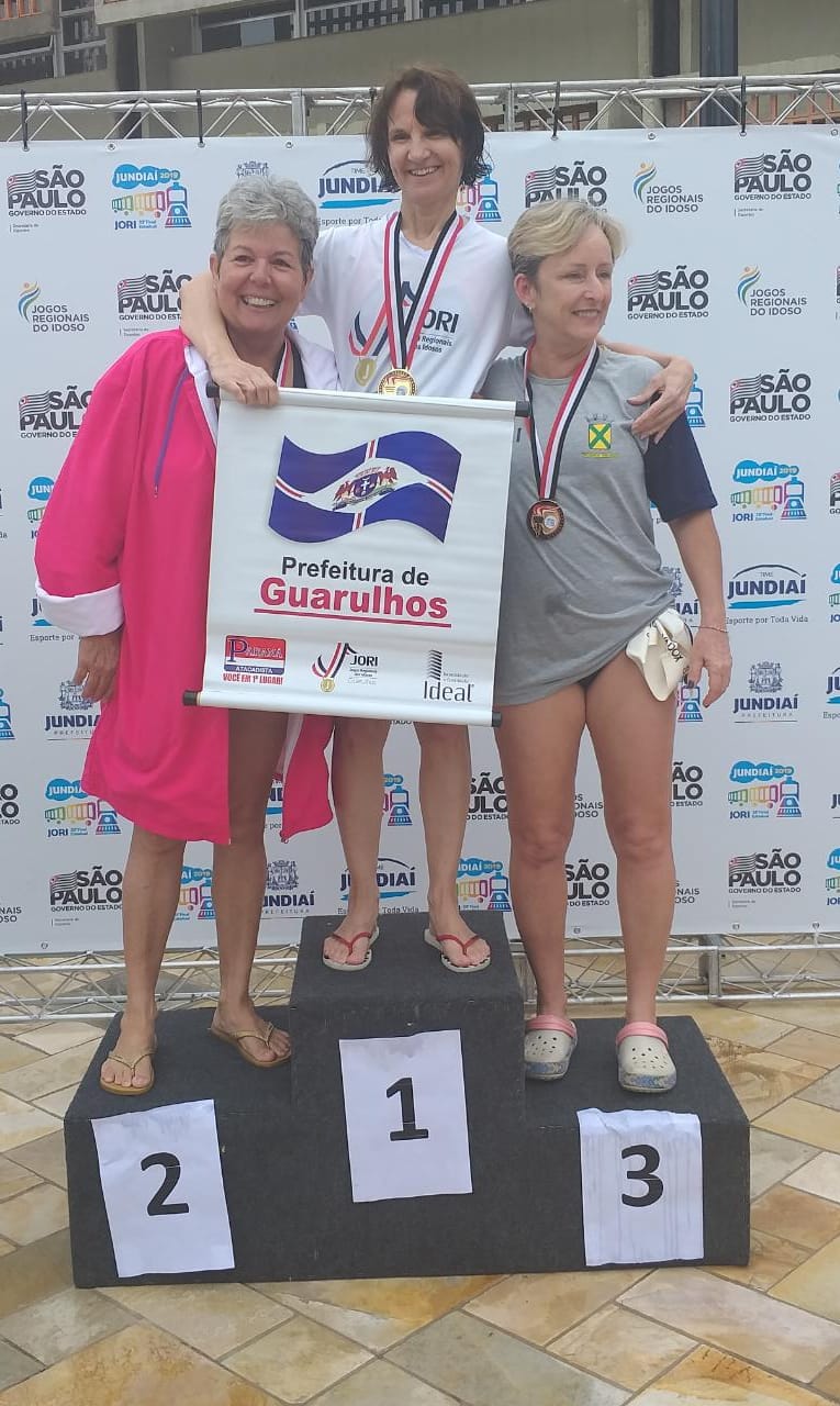 Quatro atletas disputaram seis provas e levaram cinco medalhas para casa. Maria Terezinha conquistou dois bronzes, nas provas 25m costas e 25m livre, categoria D. Isa Paz, atleta e professora da Secretaria de Esporte e Lazer de Guarulhos, garantiuo ouro nos 50m costas e prata nos 50m livre, categoria A.